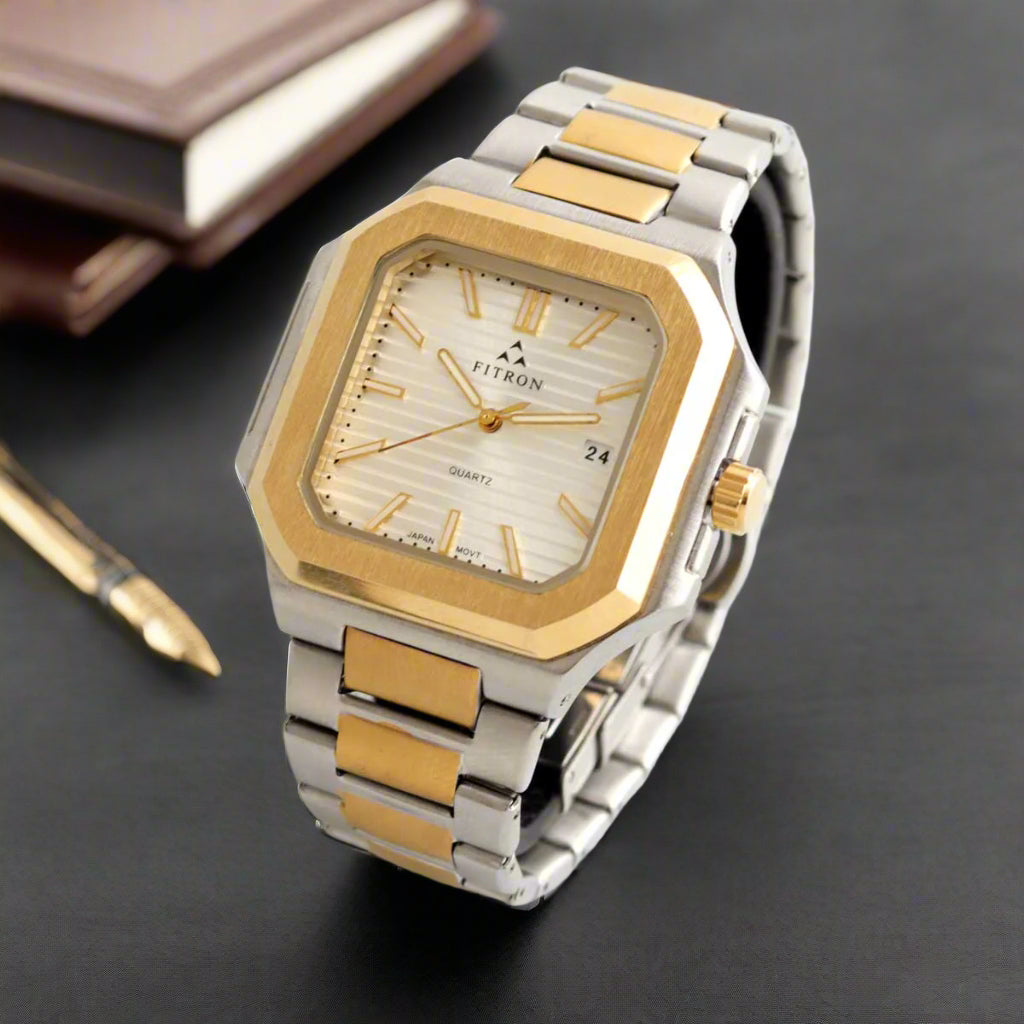 The Fitron Watch blends classic style with everyday functionality. Featuring a Japan Quartz Movement, it ensures precise and reliable timekeeping. Its durable stainless steel case and strap offer a polished, timeless look that complements both casual and formal wear. A date display at 3 o'clock adds practicality to its sleek design, making it perfect for daily use. This watch is a stylish, reliable, and affordable choice for the modern gentleman